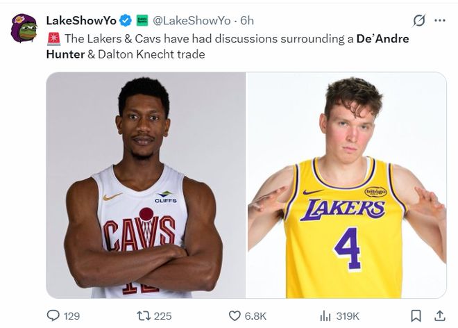 • 隊記:騎士最近與湖人有實質(zhì)性接觸,雙方就亨特展開了交易討論