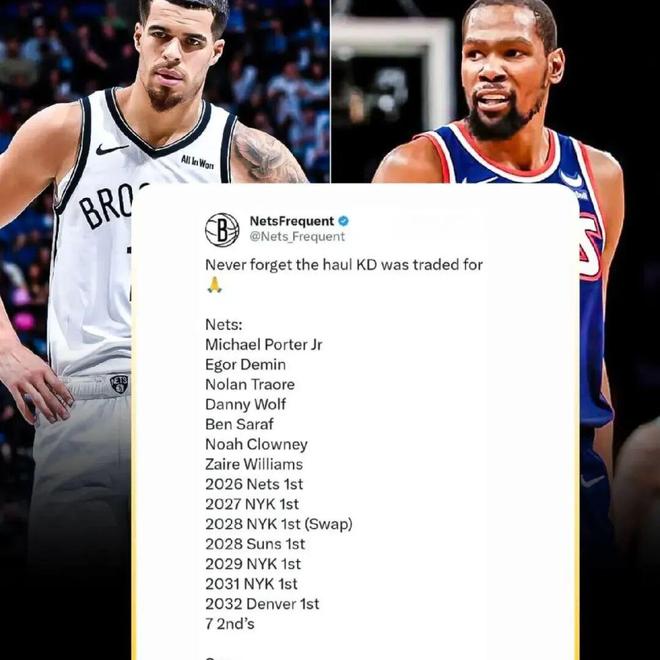 也就是說(shuō),如果小波特再被換出1個(gè)首輪簽,那么相當(dāng)于籃網(wǎng)從杜蘭特的交易里得到了11個(gè)首輪簽、3個(gè)首輪互換、多個(gè)次輪簽,簡(jiǎn)直炸裂。