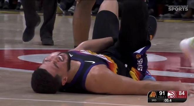 布克痛苦倒地,完全無(wú)法獨(dú)立站起來