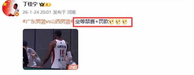 今晚對山西隊來說,是輸球又輸人,不但遭到廣東隊雙殺,球隊的第一外援迪亞洛也大概率要遭到罰款和禁賽。