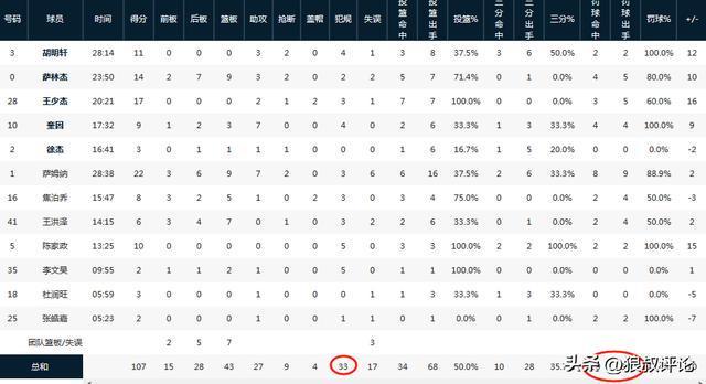 全場比賽,廣東12人輪換,12人全部有得分進賬,薩姆納得到全隊最高的22分,王少杰有17分進賬。李文昊,陳家政累計5次犯規(guī)離場。