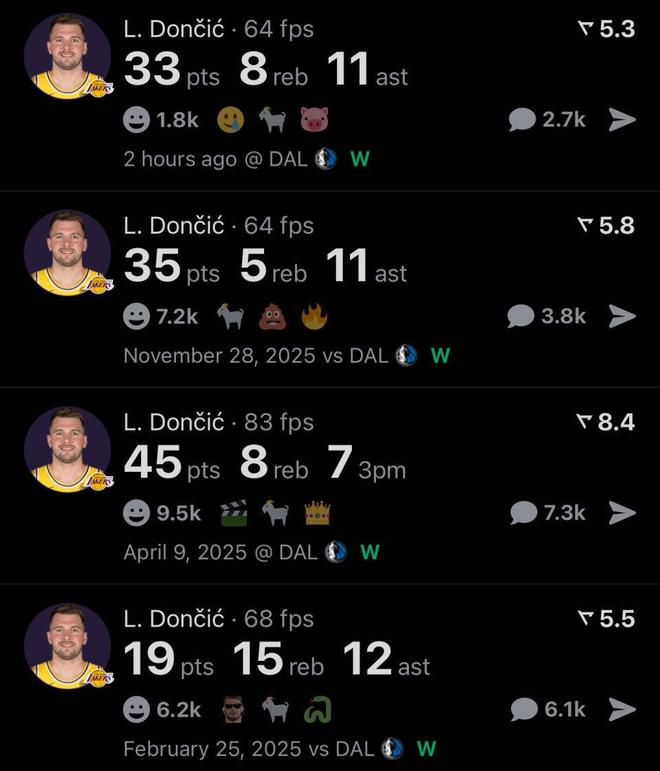 這也是東契奇加盟湖人后對陣?yán)蠔|家獨(dú)行俠傲人表現(xiàn)的縮影,生涯至今,東契奇4次對陣獨(dú)行俠場均可以轟下33分9板10.3助全能數(shù)據(jù),取得4勝0負(fù)的不敗戰(zhàn)績。