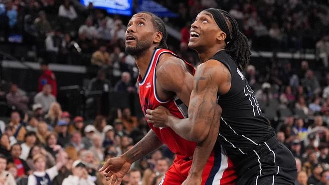 次節(jié)較量,倫納德3罰全中,桑德斯搶斷波特,波特單打不進,倫納德轟進2記三分球?;@網請求暫停,曼恩轟進遠投,小波特外線打鐵,喬丹米勒、倫納德相繼中投得分,桑德斯2罰1中。波特命中2+1,倫納德中投得分,鄧恩拋投打進,威爾遜轟進遠投。科林斯低位取分,倫納德跳投打進,沃爾夫回敬三分球,泰倫盧請求暫停。科林斯上籃打進,米勒補籃得分,快船取得38分領先。