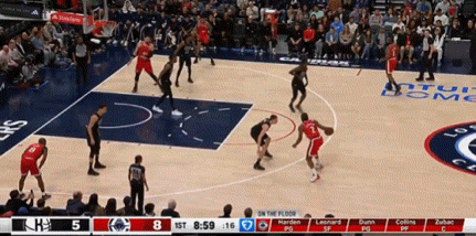 哈登負(fù)責(zé)控場(chǎng),柯林斯在禁區(qū)活力十足
