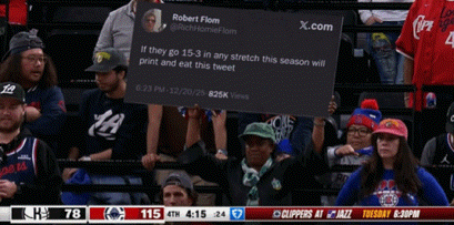 今天,快船球迷把這個(gè)推文打印出來(lái)帶到了現(xiàn)場(chǎng)