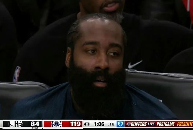 開場(chǎng)哈登的第一攻,就被克拉克斯頓帽掉