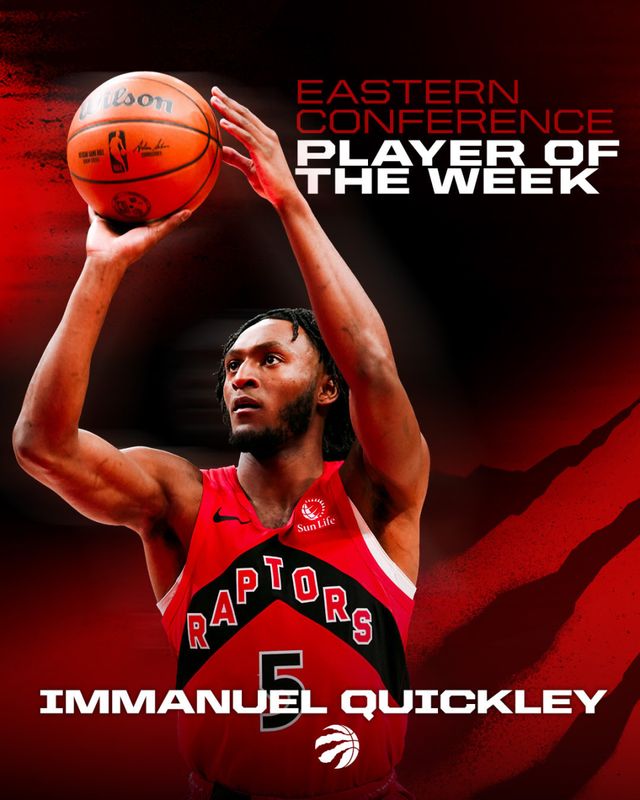 過去一周,奎克利幫助猛龍打出4勝0負(fù)的戰(zhàn)績,場均貢獻(xiàn)25.3分6.8籃板,投籃命中率高達(dá)61.1%。