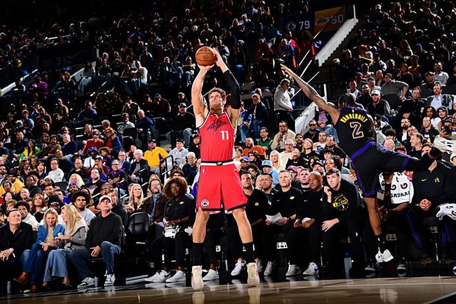 本場比賽中,快船的替補(bǔ)中鋒布魯克-洛佩斯(Brook Lopez)的表現(xiàn)實(shí)在是有些不太理想。洛佩斯全場出場16分19秒,期間沒有完成1次投籃,沒有得到1分,僅貢獻(xiàn)了3籃板2搶斷1蓋帽的數(shù)據(jù),還有1次失誤和4次犯規(guī),正負(fù)值為-10。洛佩斯在進(jìn)攻端起不到任何的作用,也沒有得到球隊教練組基本的支持,沒有辦法得到任何的出手機(jī)會。另一方面,洛佩斯在防守端的表現(xiàn)其實(shí)也是很不理想的??雌饋砺迮逅乖谧o(hù)筐和內(nèi)線防守方面能夠起到一定的作用。然而從實(shí)際情況來看,洛佩斯在移動速度方面的短板非常明顯,可以說是被對手各種利用。甚至他都沒有辦法抵擋住對手替補(bǔ)中鋒約納斯-瓦蘭丘納斯(Jonas Valanciunas)的沖擊。洛佩斯在場上時球隊的局面也是不太理想的,這也能夠體現(xiàn)在他較低的正負(fù)值上。