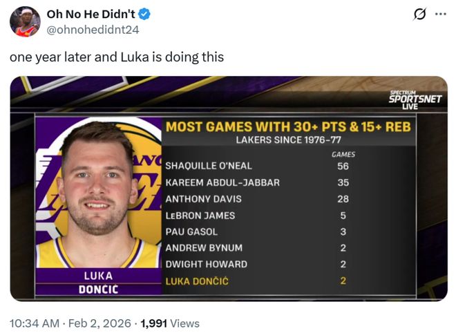 憑借這樣的表現(xiàn),東契奇湖人生涯第二次單場(chǎng)交出至少30分15板,成功追平拜納姆與霍華德并列隊(duì)史第六,奧尼爾56次第一、賈巴爾35次第二、濃眉哥28次第三、詹姆斯5次第四、大加索爾3次第五。