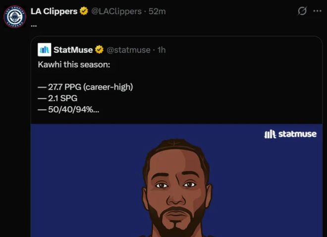 此前快船官方都用了三個...省略號來為小卡鳴不平,畢竟全明星替補是教練員選出來的,這說明小卡不受待見。
