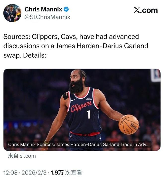 如今根據(jù)《體育畫報(bào)》名記Chris Mannix報(bào)道,快船與騎士正深入討論用哈登換加蘭的交易,但其中尚且存在薪資匹配、選秀權(quán)補(bǔ)償、球員意愿等關(guān)鍵障礙因素。
