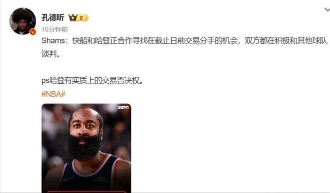 "那么對于哈登這波操作你覺得值不值?如果火箭交易得到他,你覺得能沖出西部嗎?評論區(qū)說出你的腦洞!"