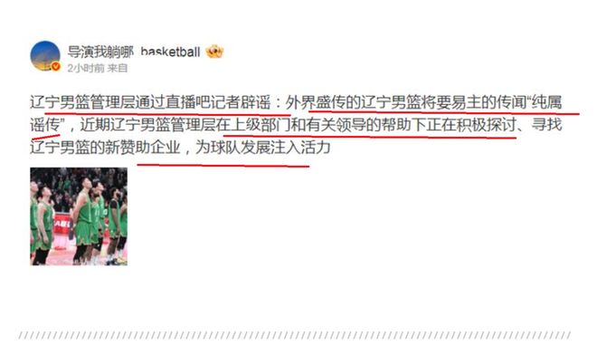 遼寧隊(duì)管理層人員:目前,遼寧隊(duì)沒有要出售的計(jì)劃,現(xiàn)階段,球隊(duì)正在尋求新的贊助商,為球隊(duì)注入新動(dòng)力!