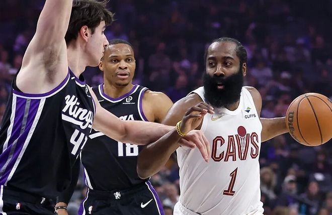 特別是和騎士一戰(zhàn),由于是哈登騎士首秀,我們終于能好好觀察國王這支球隊,一套殘陣和騎士打得有來有回,甚至最后2分鐘還反超了騎士,但威少總會出手,兩次強行超遠三分打鐵,一次運球失誤直接出底線,當?shù)铝_贊三分球維持一絲懸念時,又是威少的三分打鐵,哈登四罰全中鎖定勝局。包括之前一場打快船,國王早早拉開10分分差,眼看快船艱難追分,總有一些差距,國王主帥克里斯蒂也著急,第四節(jié)直接放棄讓主力上場,送快船一場勝利。這下好了,原來國王總能找到輸球方式:要么威少在場自爆,要么棄用主力。