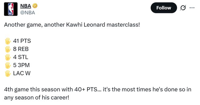 同時(shí)本場(chǎng)是小卡本賽季第4次單場(chǎng)轟下40+得分表現(xiàn),同樣創(chuàng)其個(gè)人生涯新高。
