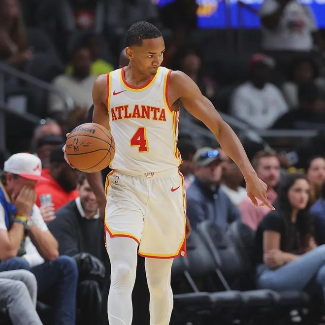 科比-巴夫金的選秀模板是喬丹-普爾,大家應(yīng)該也能猜到他的打球特點(diǎn)。身材比較瘦弱,控衛(wèi)的體型、得分后衛(wèi)的打法。2023年選秀大會(huì),科比-巴夫金首輪第15順位被老鷹選中。生涯前兩年一共只打了27場(chǎng)比賽,場(chǎng)均5分2板1.6助。