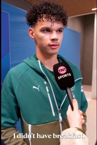 沒(méi)有嗎?沒(méi)吃早餐就踢歐冠還進(jìn)了你的第一個(gè)歐冠進(jìn)球?