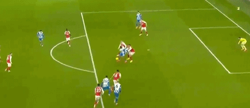 第93分鐘,馬丁內(nèi)利頭球擺渡,薩卡單刀殺入禁區(qū),不過最后的推射被對方后衛(wèi)封堵。