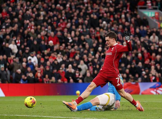 隨著主裁判一聲哨響,利物浦就在主場大舉壓上圍攻狼隊,第8分鐘維爾茨右路帶球推進,隨后橫敲給了中路跟進的麥卡利斯特,可惜后者沒有拿到皮球,2分鐘之后,維爾茨中場送出一腳妙傳,?;倏私麉^(qū)內兜射遠角,可惜運氣不佳被門柱擋出,第28分鐘麥卡利斯特的勁射再次擊中門框。