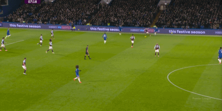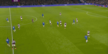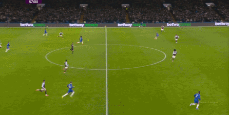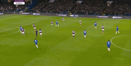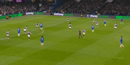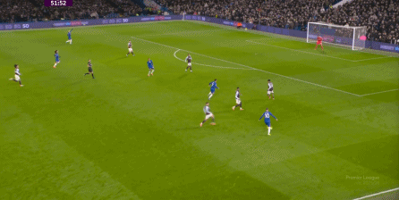 這樣一來,林德勒夫的弱勢就會帶動身前和身側(cè)的球員一起退縮,邊后衛(wèi)、邊前衛(wèi),中前衛(wèi)都要跟著塌,切爾西便很容易能通過球員壓上和無球跑動,制造出從這一側(cè)起腳傳中的空間: