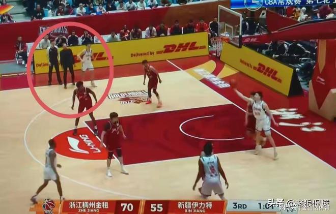 值得一提的是,在比賽進(jìn)行到第三節(jié)末段,場(chǎng)上發(fā)生了一個(gè)小插曲。當(dāng)時(shí)浙江隊(duì)進(jìn)攻,在進(jìn)入半場(chǎng)陣地戰(zhàn)后,裁判突然一聲哨響,給了浙江隊(duì)主帥法萊卡斯一個(gè)技犯,這也令法萊卡斯一頭霧水,這時(shí)主裁判楊宏鋒走過來,對(duì)法萊卡斯進(jìn)行了解釋。