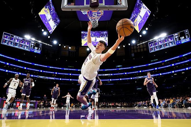 本場(chǎng)比賽中,湖人的替補(bǔ)側(cè)翼新星杰克-拉拉維亞(Jake LaRavia)面對(duì)著自己的老東家國(guó)王的表現(xiàn)還算不錯(cuò)。拉拉維亞全場(chǎng)出場(chǎng)25分20秒,投籃8中3,三分線外3中0,罰球5中5,得到了11分2籃板4助攻2搶斷1蓋帽的數(shù)據(jù),還有2次失誤和5次犯規(guī),正負(fù)值為+13。拉拉維亞在進(jìn)攻端雖然手感平平,但是他還是通過其他方式得到了一定的分?jǐn)?shù),在進(jìn)攻端起到了不小的作用。拉拉維亞也展現(xiàn)出了一點(diǎn)的傳球能力和策應(yīng)能力,看起來場(chǎng)上功能也是非常全面的。拉拉維亞在防守端也是非常積極,也是有著不錯(cuò)的個(gè)人防守能力的??傮w來看,拉拉維亞在本場(chǎng)比賽中的表現(xiàn)算得上是非常突出,他的不俗表現(xiàn)也是為球隊(duì)的這場(chǎng)勝利做出了不小的貢獻(xiàn)。