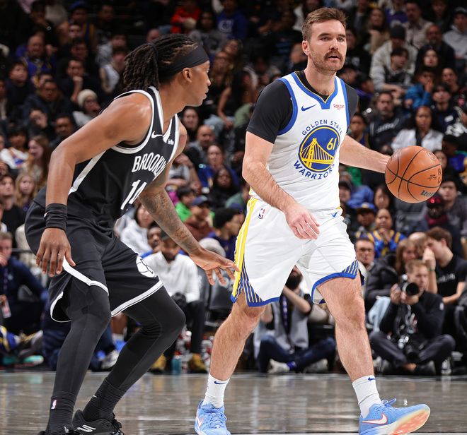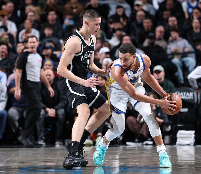 這是勇士背靠背的第二場(chǎng),他們剛剛在寒冷的多倫多鏖戰(zhàn)加時(shí)賽不敵猛龍,隨后又馬不停蹄飛到紐約對(duì)陣籃網(wǎng),籃網(wǎng)就比猛龍好打一些,畢竟籃網(wǎng)是東部倒數(shù)第三。庫里對(duì)陣猛龍一戰(zhàn)30投12中拿39分4籃板3助攻加時(shí)賽3中0遭到質(zhì)疑,此役開場(chǎng)庫里慢熱,首節(jié)4中1+三分3中0只拿到2分1籃板3助攻,好在勇士替補(bǔ)席的努力緊咬比分。