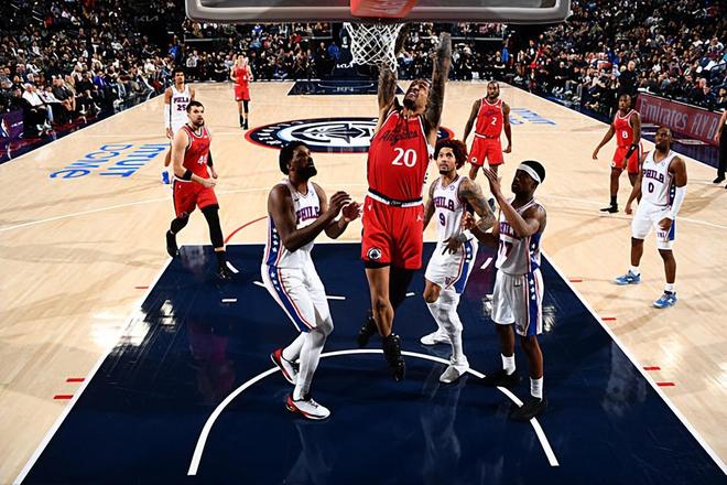 本場(chǎng)比賽中,快船的先發(fā)鋒線球員約翰-科林斯(John Collins)的表現(xiàn)其實(shí)并不能令人感到非常滿意??屏炙谷珗?chǎng)出場(chǎng)31分57秒,投籃11中6,三分線外5中2,罰球4中1,得到了15分7籃板2助攻的數(shù)據(jù),還有2次失誤和4次犯規(guī),正負(fù)值為-6??屏炙乖谶M(jìn)攻端的表現(xiàn)還是值得肯定的,他還是展現(xiàn)出了不俗的個(gè)人能力,并且抓住了不多的機(jī)會(huì)得到了一定的分?jǐn)?shù),起到了應(yīng)該起到的作用。然而問(wèn)題就在于,科林斯在防守端的表現(xiàn)其實(shí)并不能令人感到非常滿意,他的個(gè)人防守能力并沒(méi)有完全發(fā)揮出來(lái),他在防守意識(shí)方面存在著不足,他在防守選位方面也存在著一定的問(wèn)題,這也是76人雙向合同鋒線球員多米尼克·巴洛(Dominick Barlow)能夠打出生涯最佳之戰(zhàn)的重要因素。