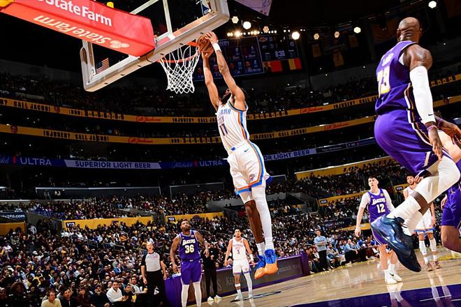 在此前的一場NBA常規(guī)賽中,俄克拉荷馬城雷霆經(jīng)過苦戰(zhàn)后以119比110戰(zhàn)勝了主場作戰(zhàn)的洛杉磯湖人。本場比賽后,結(jié)束了兩連敗的雷霆的戰(zhàn)績提升到了41勝13負(fù),繼續(xù)排名西部榜首位置,與身后的圣安東尼奧馬刺的勝場差為4場;而結(jié)束了3連勝的湖人的戰(zhàn)績則是下滑到了32勝20負(fù),繼續(xù)排名西部第5位,與身前的休斯頓火箭和身后的明尼蘇達(dá)森林狼的勝場差均為半場。