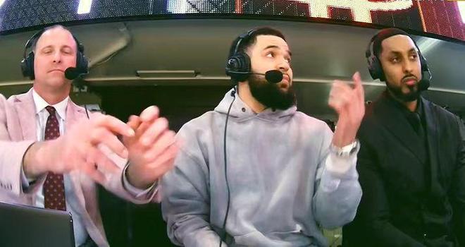 范弗利特現(xiàn)身火箭演播室,搭檔解說比賽。