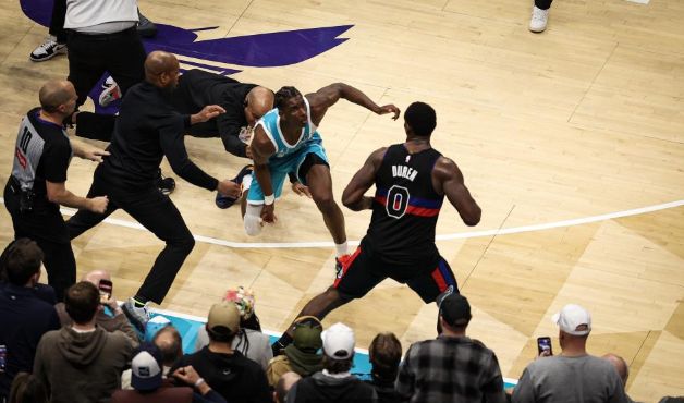 在該場(chǎng)比賽進(jìn)行到第三節(jié)時(shí),雙方爆發(fā)大規(guī)模沖突。先是杜倫與迪亞巴特兩位內(nèi)線發(fā)生肢體沖突,其中杜倫掌摑迪亞巴特的面部,他追著杜倫要打引發(fā)沖突。隨后斯圖爾特與布里奇斯加入進(jìn)來(lái),尤其是斯圖爾特隨后再次沖進(jìn)場(chǎng)內(nèi)追打布里奇斯,也是引發(fā)雙方第二輪的沖突,而迪亞巴特隨后被工作人員拉走,四位球員當(dāng)時(shí)全部被驅(qū)逐離場(chǎng)。