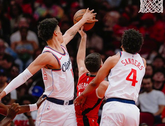 后半段德里克瓊斯和謝潑德又在外線(xiàn)對(duì)飆,馬瑟琳轟三分追平后,小賈帶隊(duì)打出小高潮,第一節(jié)火箭29-22領(lǐng)先快船。進(jìn)入第二節(jié),謝潑德續(xù)上三分,申京自投自搶暴扣,大洛和馬瑟琳勉強(qiáng)維持局面,謝潑德內(nèi)外開(kāi)花又將快船打停!危急時(shí)刻鄧恩三分球止血,謝潑德喂餅杜蘭特空切暴扣,倫納德繼續(xù)單打,伊森和杜蘭特下三分雨。節(jié)末伊森撿漏扣籃,杜蘭特高難度底角跳投,火箭最多領(lǐng)先15分。瓊斯轟三分,馬瑟琳造殺傷,快船打出小高潮,半場(chǎng)快船追到46-56。進(jìn)入下半場(chǎng),大洛佩茲上三分,倫納德反擊暴扣。