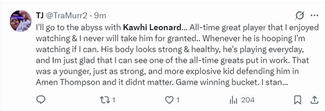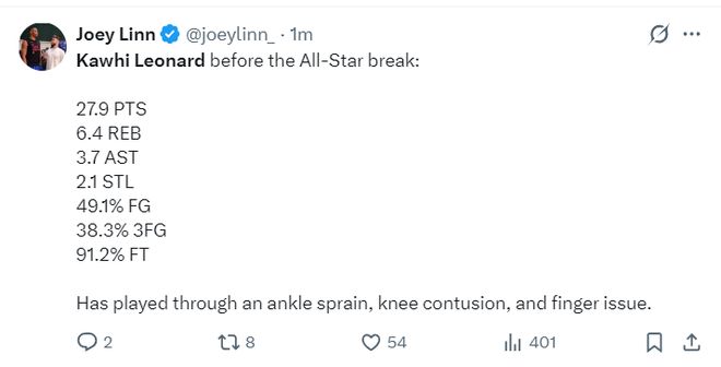 NBA記者Khalil Zaabri賽后寫道:卡哇伊打出了職業(yè)生涯最高光的一個(gè)賽季,但快船管理層那些蠢材卻送走了多位核心球員,這簡(jiǎn)直太荒唐了。
