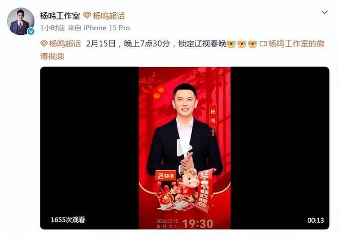 當(dāng)遼寧衛(wèi)視正式放出春晚海報,白紙黑字確認(rèn)楊鳴將在2月15日登臺獻(xiàn)藝時。