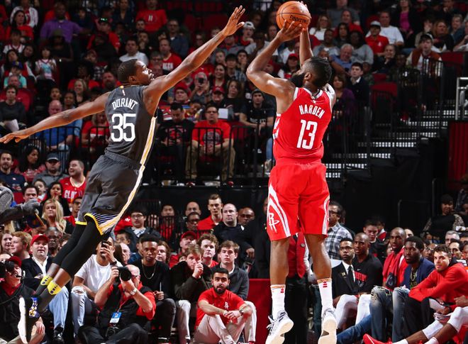 下一年,庫里73勝賽季,撤步三分59中37,哈登45中18。