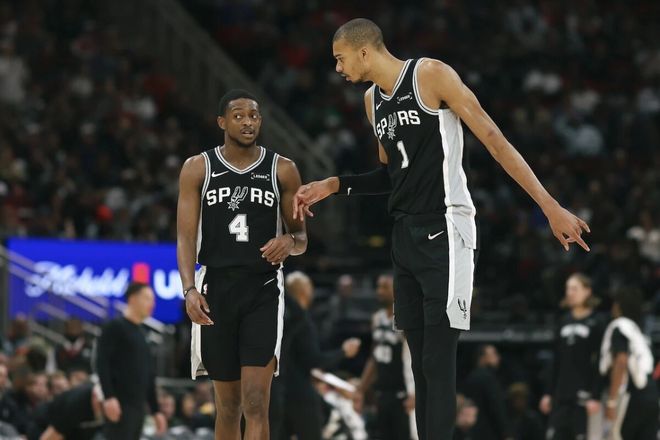 本賽季福克斯和文班亞馬同時(shí)在場(chǎng)時(shí),馬刺百回合凈勝10.1分。首發(fā)五虎——??怂?文班+尚帕尼/瓦塞爾+卡斯?fàn)?巴恩斯,凈勝分拉到12.4到15.7。這是爭(zhēng)冠級(jí)別的正負(fù)值。馬刺上一次有兩人同時(shí)入選全明星,還是2016年的倫納德和阿爾德里奇。那一年馬刺67勝。今年西部第二,配得上雙星。