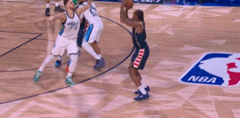 接球晃開防守,直奔籃筐爆扣!