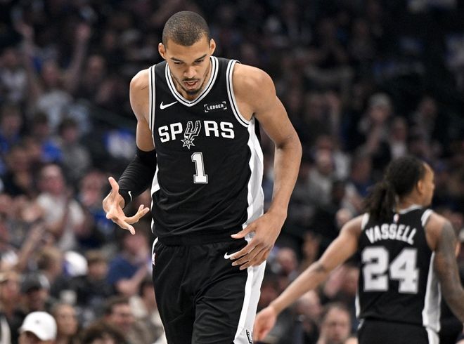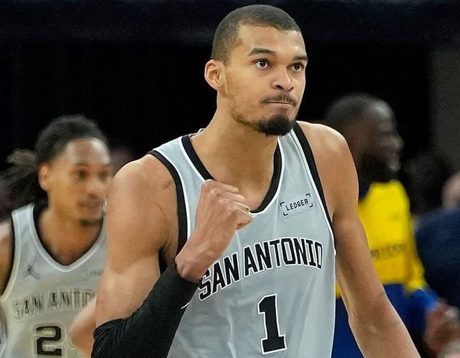 讓我們先簡(jiǎn)要回顧一下文班亞馬新賽季的一些高光表現(xiàn)吧。揭幕戰(zhàn)打獨(dú)行俠,文班亞馬怒砍40分+15籃板+3蓋帽,得分創(chuàng)個(gè)人賽季新高;打鵜鶘,文班亞馬豪取29分+11籃板+9蓋帽,蓋帽數(shù)創(chuàng)個(gè)人賽季新高;打熱火,文班亞馬貢獻(xiàn)27分+18籃板+6助攻+5蓋帽,籃板數(shù)創(chuàng)個(gè)人賽季新高;打勇士,文班亞馬拿到31分+15籃板+10助攻的大號(hào)三雙,助攻數(shù)創(chuàng)個(gè)人賽季新高;打湖人,文班亞馬26分鐘爆砍40分+12籃板。40分+18板+10助+9帽,文班亞馬攻防一體太強(qiáng)了!