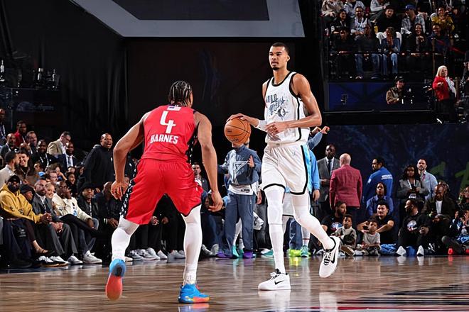 記者繼續(xù)問道:馬刺目前的進度明顯超出了賽季初大家的預(yù)期,目前球隊可以排到西部第二位,整體表現(xiàn)相當不錯。這場全明星比賽,你在兩場比賽中加起來我記得是得了34分(實際33分),另一場你的隊友達隆-??怂梗―e'Aaron Fox)還投進了制勝球。你覺得對馬刺來說是一次很好的球員實力的展現(xiàn)嗎?對此,文班亞馬繼續(xù)回答:是的,當然了。有兩個人能夠站在全明星舞臺上,這本身就意味著一些東西。我很期待能夠回到球隊。這個周末我過得很開心,但我也很期待能夠稍微休息一下,然后再回到我的球隊繼續(xù)下半賽季的比賽。