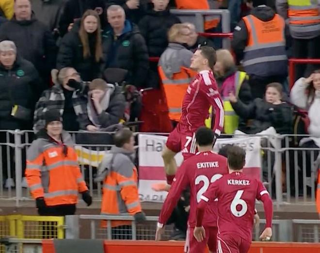 英超第18輪,利物浦主場(chǎng)對(duì)陣?yán)顷?duì),上半場(chǎng)維爾茨破門(mén)為利物浦?jǐn)U大比分,斬獲利物浦生涯首球。