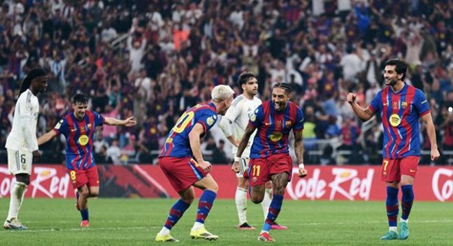 目前巴薩排名西甲第一,皇馬落后4分排第二,上賽季巴薩四殺皇馬,其中超級(jí)杯巴薩5:2擊敗皇馬奪冠。本賽季皇馬力爭(zhēng)復(fù)仇,在聯(lián)賽首回合交手時(shí),已經(jīng)主場(chǎng)2:1先勝一場(chǎng)。在本賽季西超杯半決賽,巴薩5:0狂勝畢巴,皇馬則是2:1力克馬競(jìng),兩隊(duì)會(huì)師到了今天的決賽。