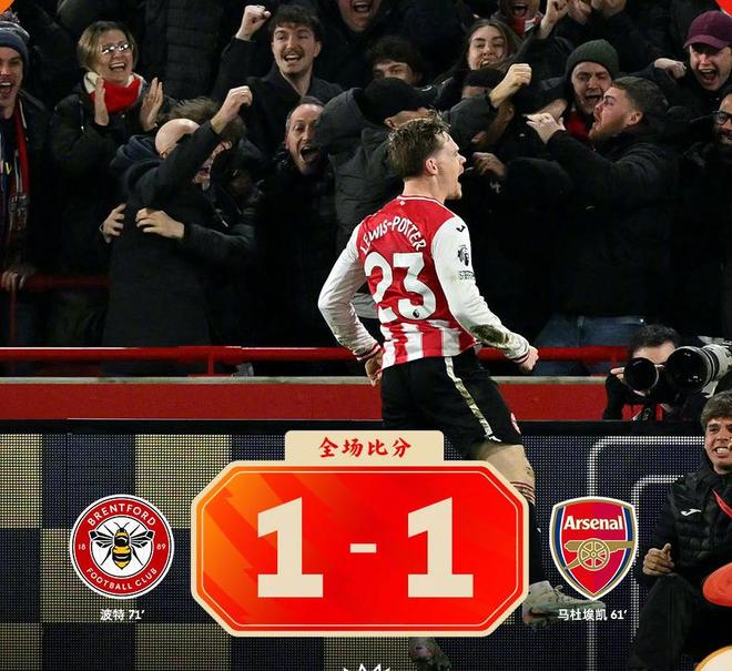 熱聞|馬杜埃凱破門,波特扳平!布倫特福德1-1阿森納送曼城大禮