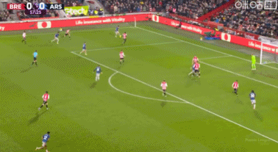 第43分鐘,拉亞及時(shí)出擊,破壞布倫特福德威脅反擊