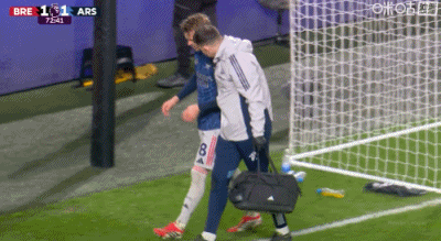 第73分鐘,厄德高出現(xiàn)受傷狀況,隊(duì)醫(yī)上場(chǎng)治療